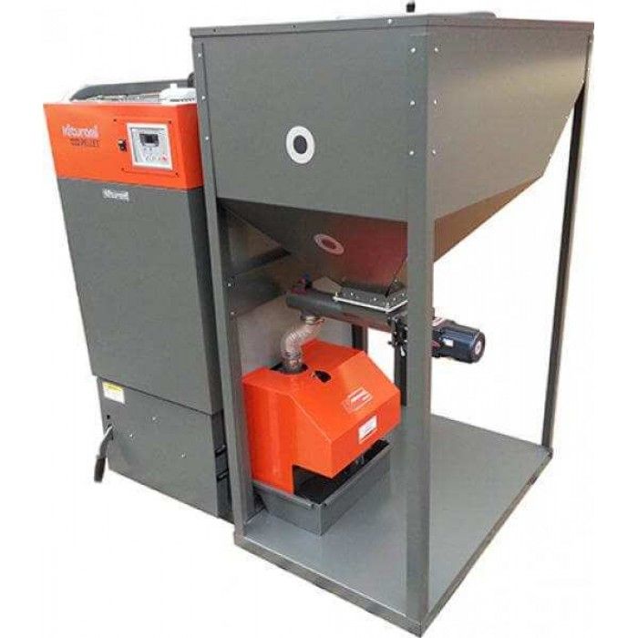 В качестве топлива используются пеллеты - это форма твёрдого топлива в виде гранул, изготавливаемых из прессованных древесных отходов.