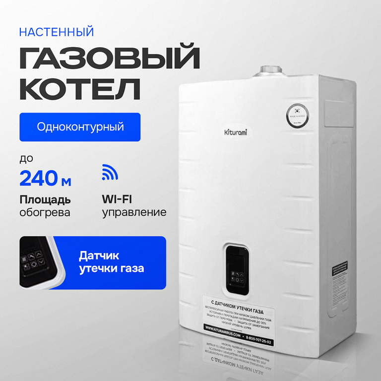 Одноконтурный котел с датчиком утечки газа, двухуровневым медным теплообменником и дополнительной шумоизоляцией